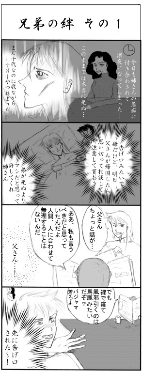 きっと凱にとっては秋亜人と居る時が一番幸せで、 お家に帰ったら地獄だったんだろ〜な〜と 考えて描いた上記の2コマ漫画に頂いたコメントを元に、 このシリーズが出来上がりました。 コメント下さった方々、ありがとうございました!